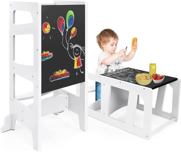 • 2-in-1 Funktion – Tritthocker & Kindertisch – Mit Tafel für Mal- & Lernspaß