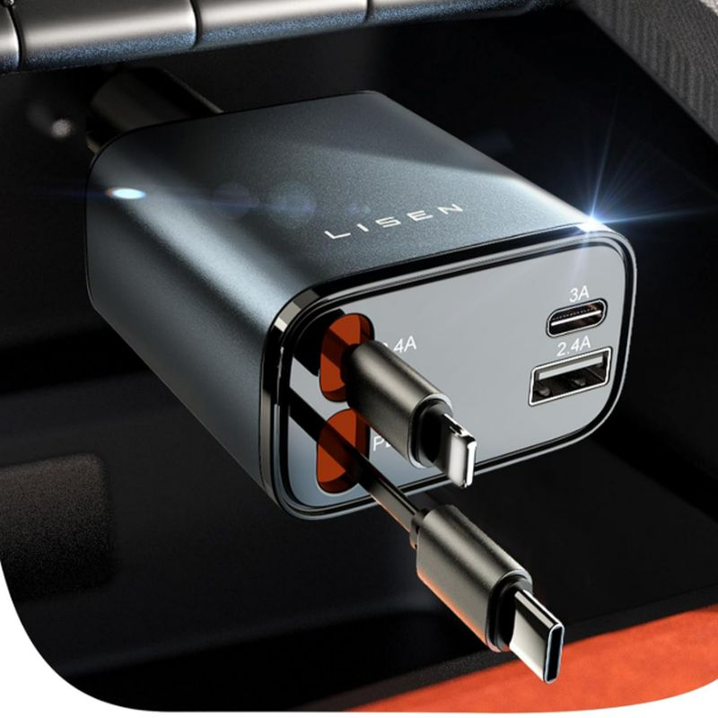 LISEN 2E7130 4-in-1 Zigarettenanzünder Ladegerät mit 69W und einziehbarem Kabel für 12,99€