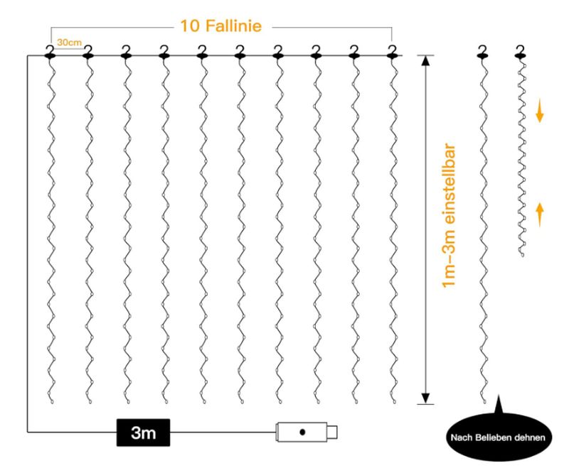 - Maße: 3×3 m mit 300 LEDs