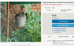 Die Idee finde ich nicht übel, denn Wespen identifizieren den Waspinator als fremdes Wespennest. Daher gehen sie instinktiv auf Abstand, denn sie wollen keinen Stress...