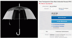 Ein guter Regenschirm und ein schlechter Sonnenschirm!? 😉 Der Preis ist mit nur 7,20 Euro inkl. Versand sicher im grünen Bereich und bezahlt wird der...