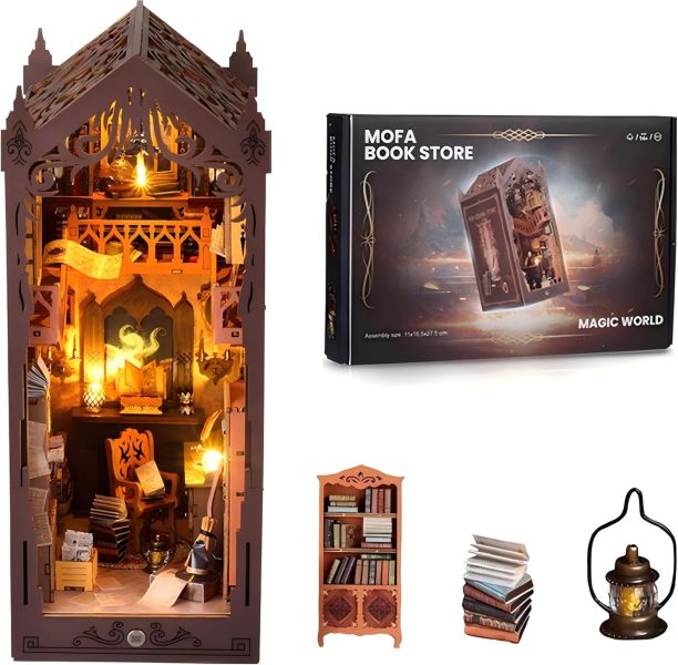 - Detailliertes DIY-Miniatur-Bauset im Fantasy-Bibliothek-Stil